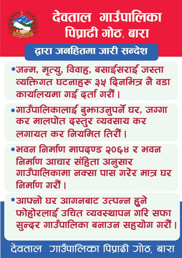 कोष तथा लेखा नियन्त्रक कार्यालय रौतहटले अब उपरान्त स्थानिय तहमा बरिष्ठ लेखाका कर्मचारीबाट मात्र खाता संचालन हुने बताएको छ । कार्यालयले मंगलबार यहाँ स्थित गौर नगरपालिकालाइ पत्राचार गर्दै कार्यालयमा रहनु भएका लेखा अधिकृत सातौँ तहका सोहन कुमार यादवका नाममा खाता संचालन हुनु पर्ने जनाएको छ