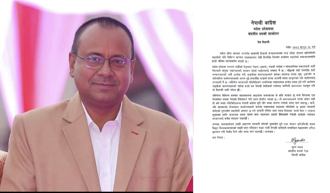 मधेस प्रदेशमा योजना खरिद विक्रीबारे काँग्रेसको चासो, आवश्यक कदम चाल्ने – सभापति यादव